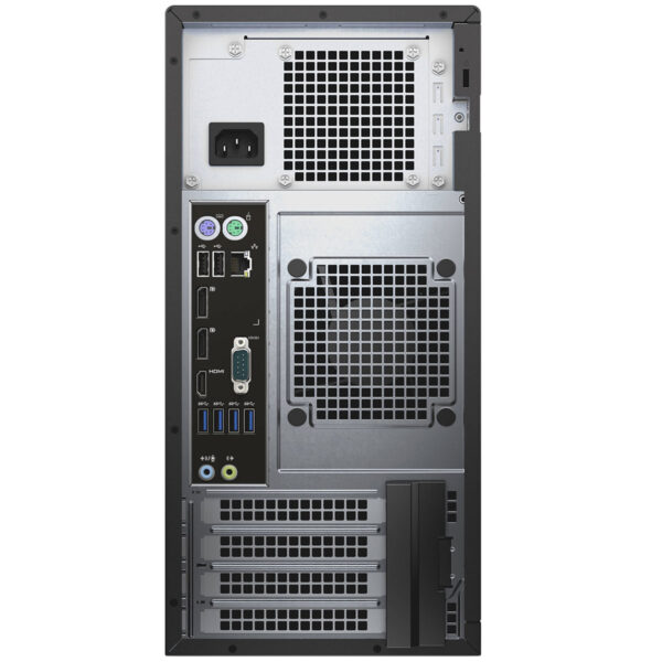 Two internal storage bays support either four 2.5-inch or two 3.5-inch SATA HDD or SSD storage devices. A slot on the motherboard supports a single M.2 NVMe drive of up to 1TB. Another M.2 can be installed using a Dell Precision Ultra-Speed drive in one of the PCie slots.Expansion Dell 3620 Workstation rear of system