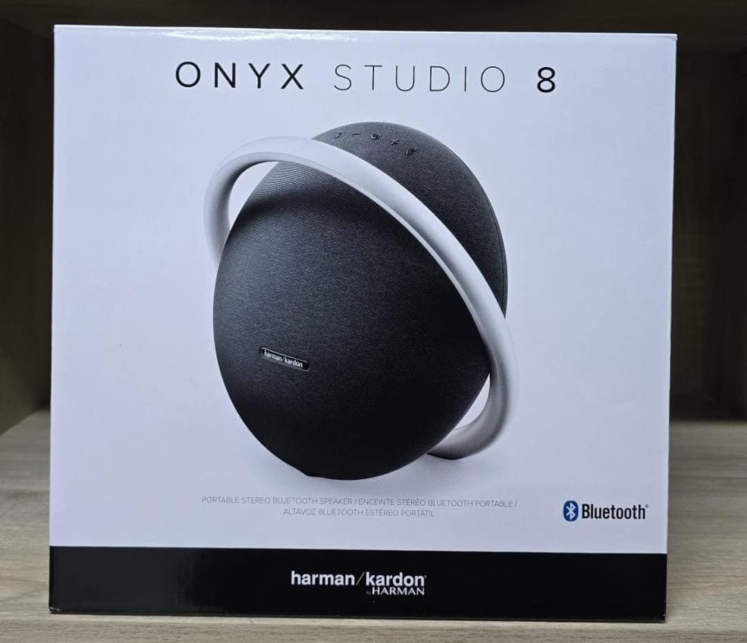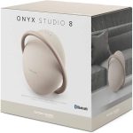 The Onyx Studio 8 is made with recycled plastic. The speaker grille fabric is woven from recycled polyester yarn, and our paper-based packaging is made with FSC-certified paper and printed with soy ink. Together, these choices reduce environmental impact.